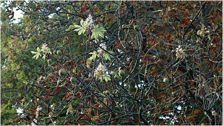 Chudák kaštan se dusí, nadechnout se nemůže a tak vyraší z pupenů, které měly rašit až na jaře nové listí. A vykvete v naději, že se ještě rozmnoží.