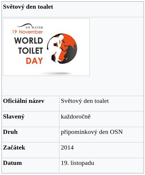 Světový den toalet (WTD) je oficiální mezinárodní pamětní den a jeho cílem je inspirovat k řešení globální sanitační krize.
